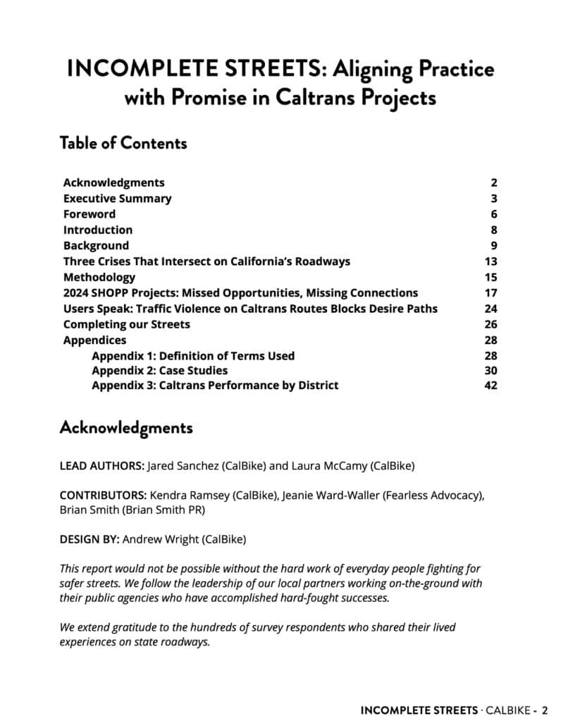 In 2023, CalBike Policy Director Jared Sanchez made a public records request for project documents from Caltrans. He wanted to see how well the agency was applying its internal Complete Streets policies and including facilities to make California’s state-controlled roadways safer for people biking and walking. Many state routes run through towns and cities and are often among the most dangerous streets, with fast-moving traffic and insufficient bike lanes and crossings, and CalBike was sponsoring a bill to require Caltrans to include biking and walking facilities, where applicable.